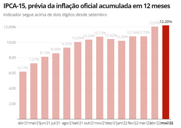 Segundo o site UOL Economia, “O objetivo da alta no juro é tentar conter a escalada da inflação. Pressionado principalmente pelo aumento dos preços dos alimentos e dos combustíveis, o IPCA-15 — considerado a prévia da inflação oficial do país — ficou em 1,73% em abril. Em 12 meses, atingiu a marca dos 12%.”